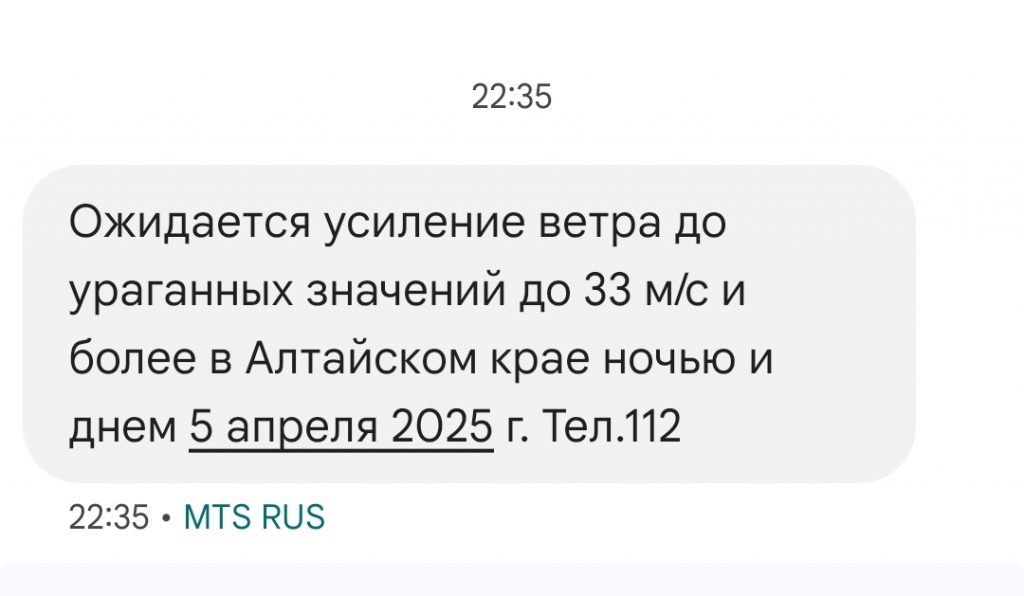Управление МЧС по Алтайскому краю совершило экстренную SMS-рассылку.