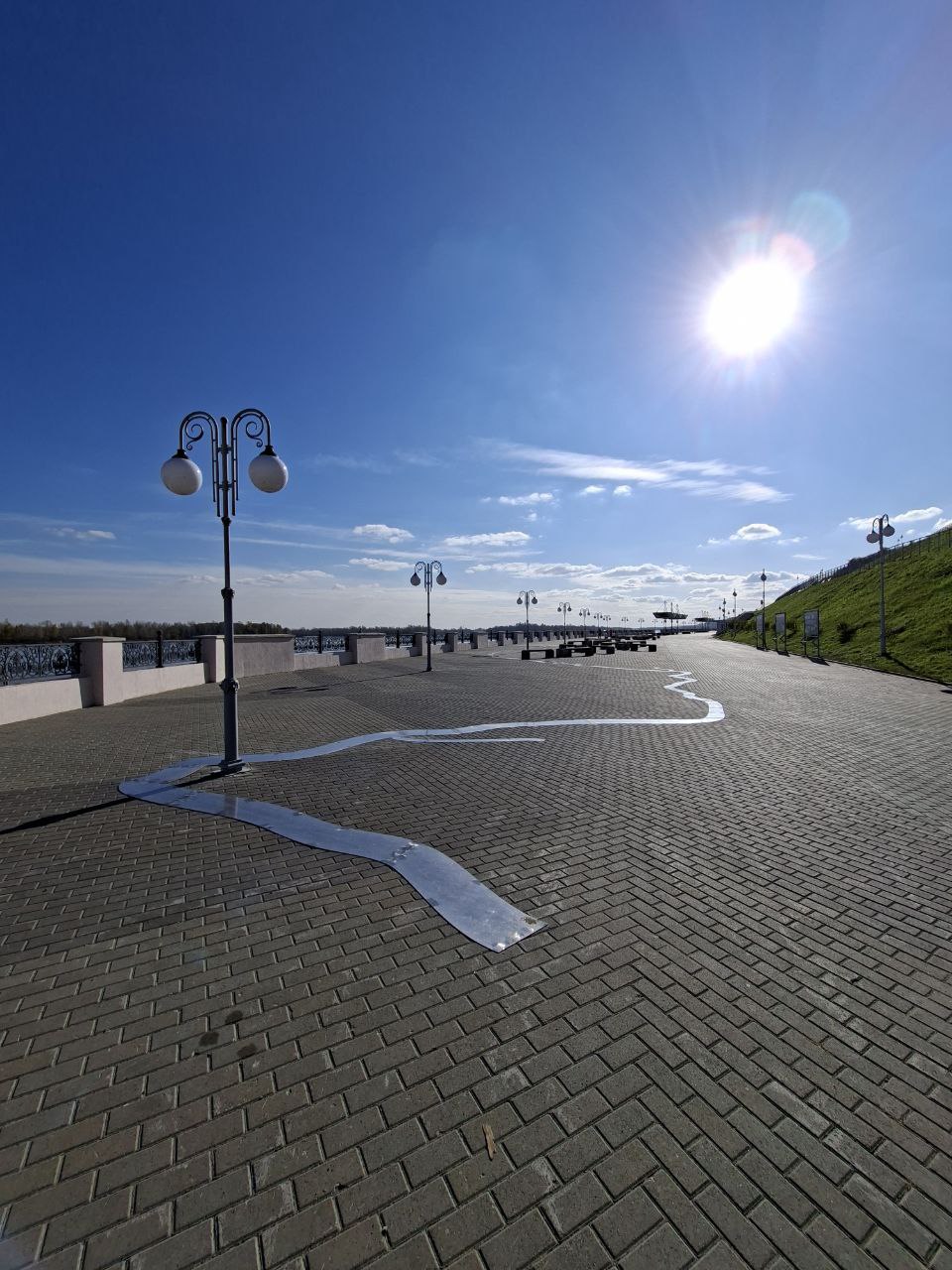 Этой осенью набережную Барнаула украсит новая арт-инсталляция. Уже сейчас на популярном месте отдыха горожан появился каркас для будущей скульптуры, а на плитке «растекается» металлическое изображение Оби.