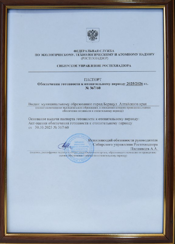 Барнаул официально готов к отопительному периоду 2025-2026 годов. Городу выдали соответствующий паспорт по итогам проверки Ростехнадзора, сообщили в мэрии.