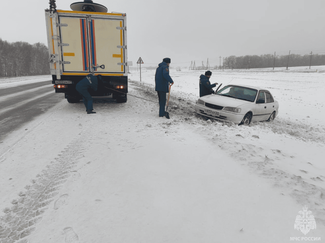 Спасатели оказывают помощь автомобилистам, оказавшимся в сложных дорожных условиях. МЧС России призывает водителей соблюдать осторожность, выбирать скоростной режим согласно погодным условиям и помнить о безопасности при гололеде.