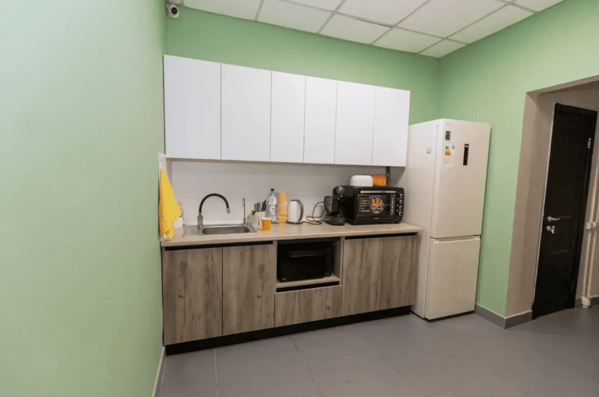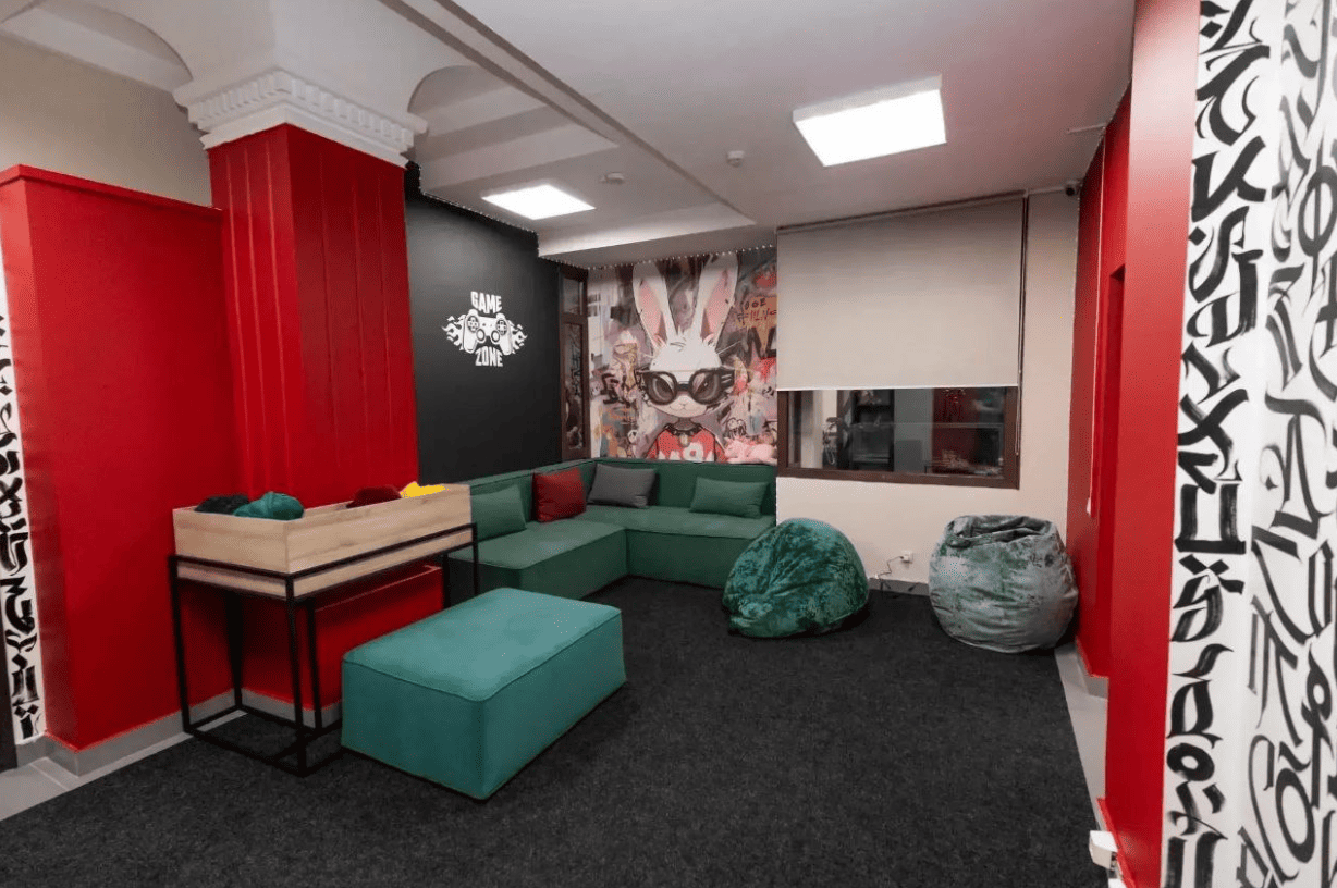 Пространство включает несколько тематических зон: территории отдыха, творчества, кухню, зал для настольных игр и комнату для мастер-классов. Также оборудованы два кабинета для индивидуальных консультаций с психологом.