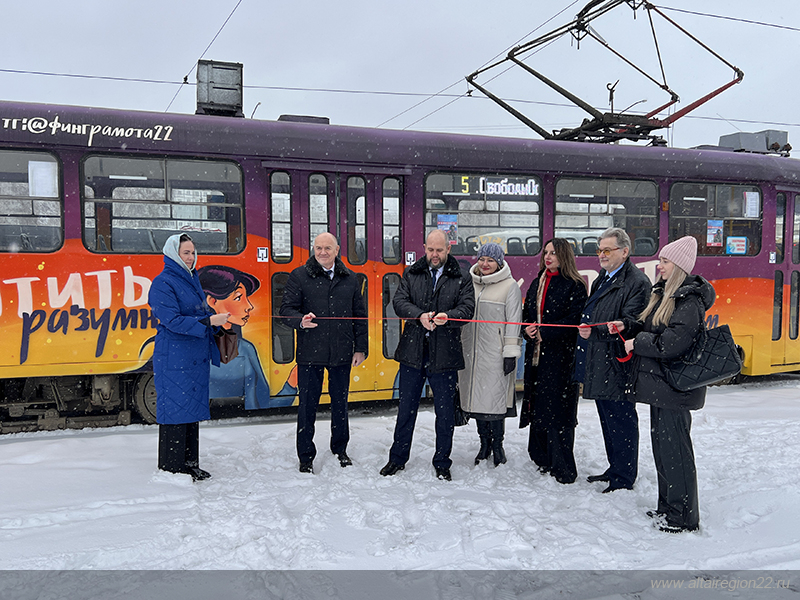 В Барнауле запустили просветительский проект «Трамвай финансовой грамотности». Его символически открыли заместитель министра финансов Алтайского края Михаил Дёмин и заместитель управляющего Отделением Банка России Игорь Князев.