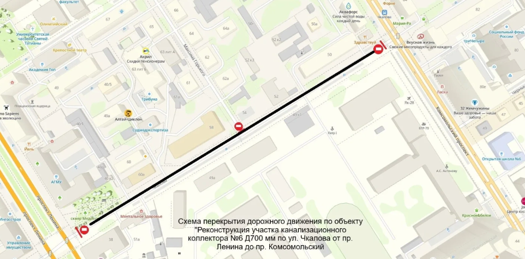 Участок улицы Чкалова в Барнауле закроют для транспорта до 30 апреля
