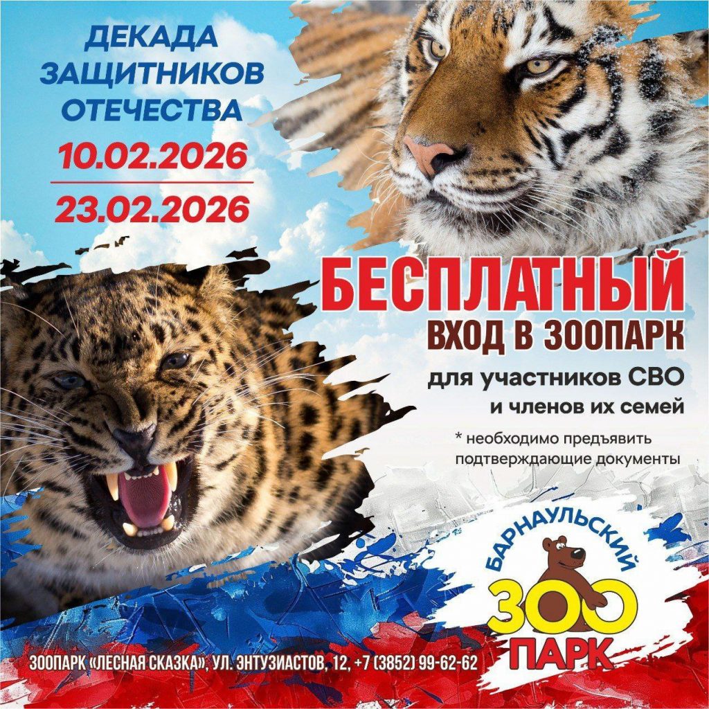 До 23 февраля включительно Барнаульский зоопарк «Лесная сказка» проводит патриотическую акцию. В этот период бесплатно посетить зоопарк могут участники специальной военной операции и члены их семей — супруги, дети и родители.
