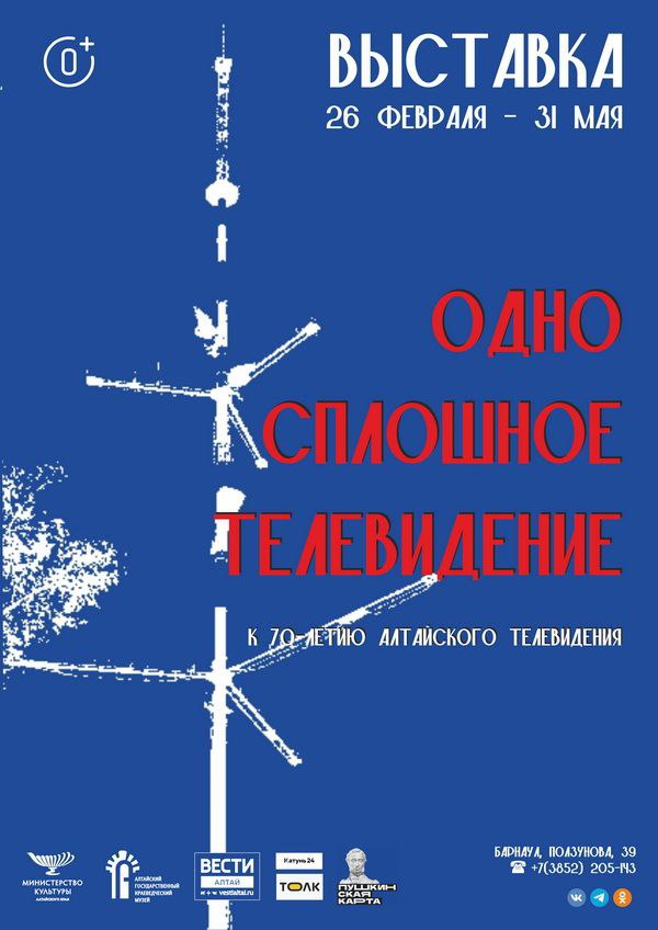 26 февраля в 16:00 в Алтайском государственном краеведческом музее начнет работу выставка «Одно сплошное телевидение», посвященная 70-летию алтайского телевидения. Об этом сообщили в министерстве культуры Алтайского края.