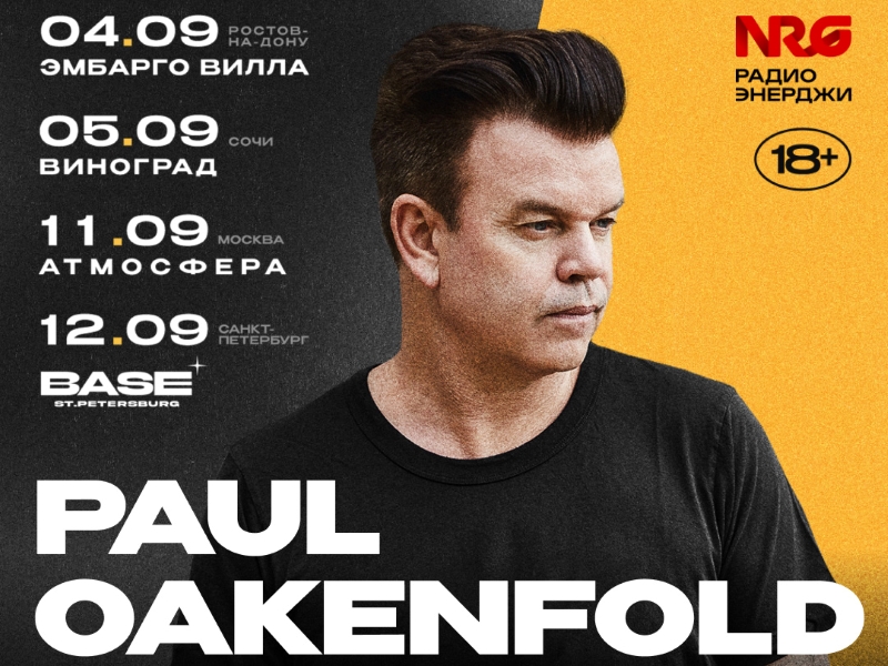 Легендарный британский диджей и продюсер Пол Окенфолд, пионер рейв-движения и трехкратный номинант на премию «Грэмми», возвращается в Россию с большим осенним туром при поддержке радиостанции «Радио ЭНЕРДЖИ (NRG)».