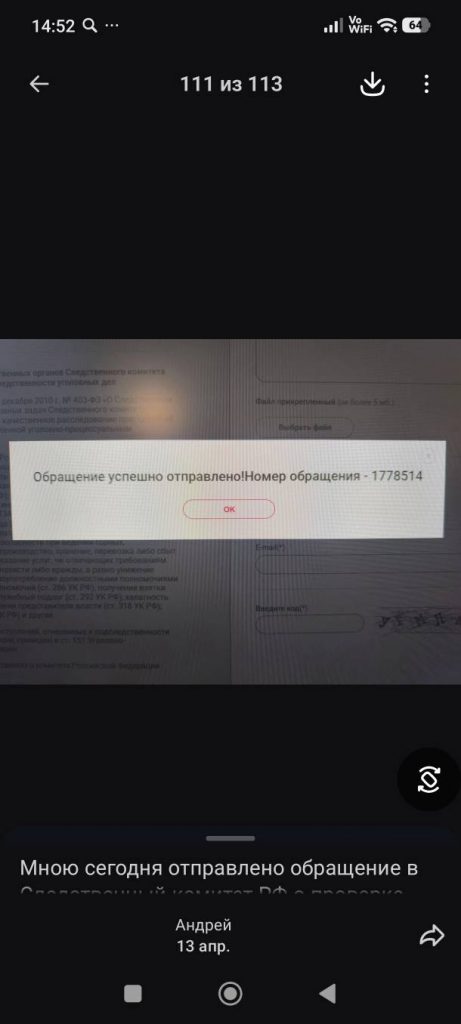 В своём обращении Андрей Кузнецов сообщает следующее.