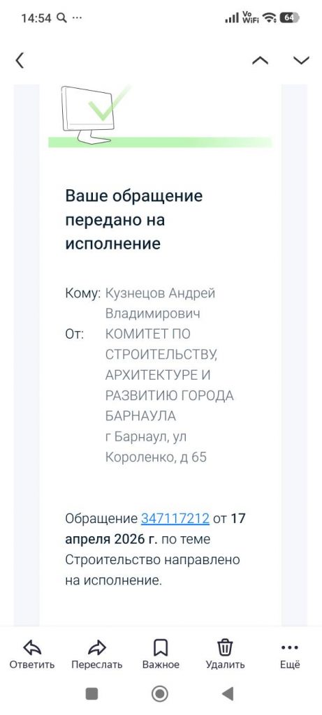 К своему письму в редакцию нашего издания неравнодушный барнаулец приложил скриншоты своих электронных обращений в официальные органы.